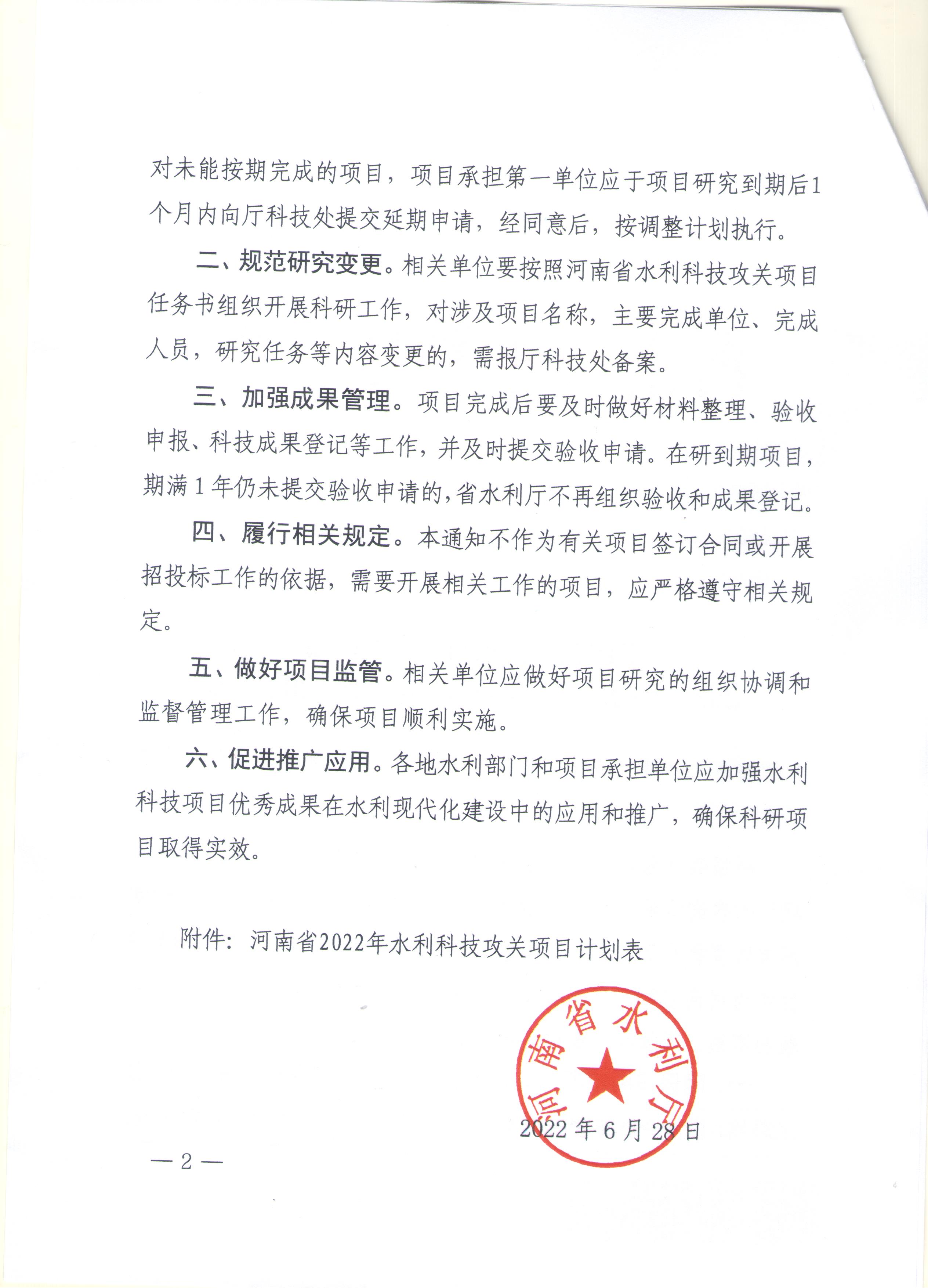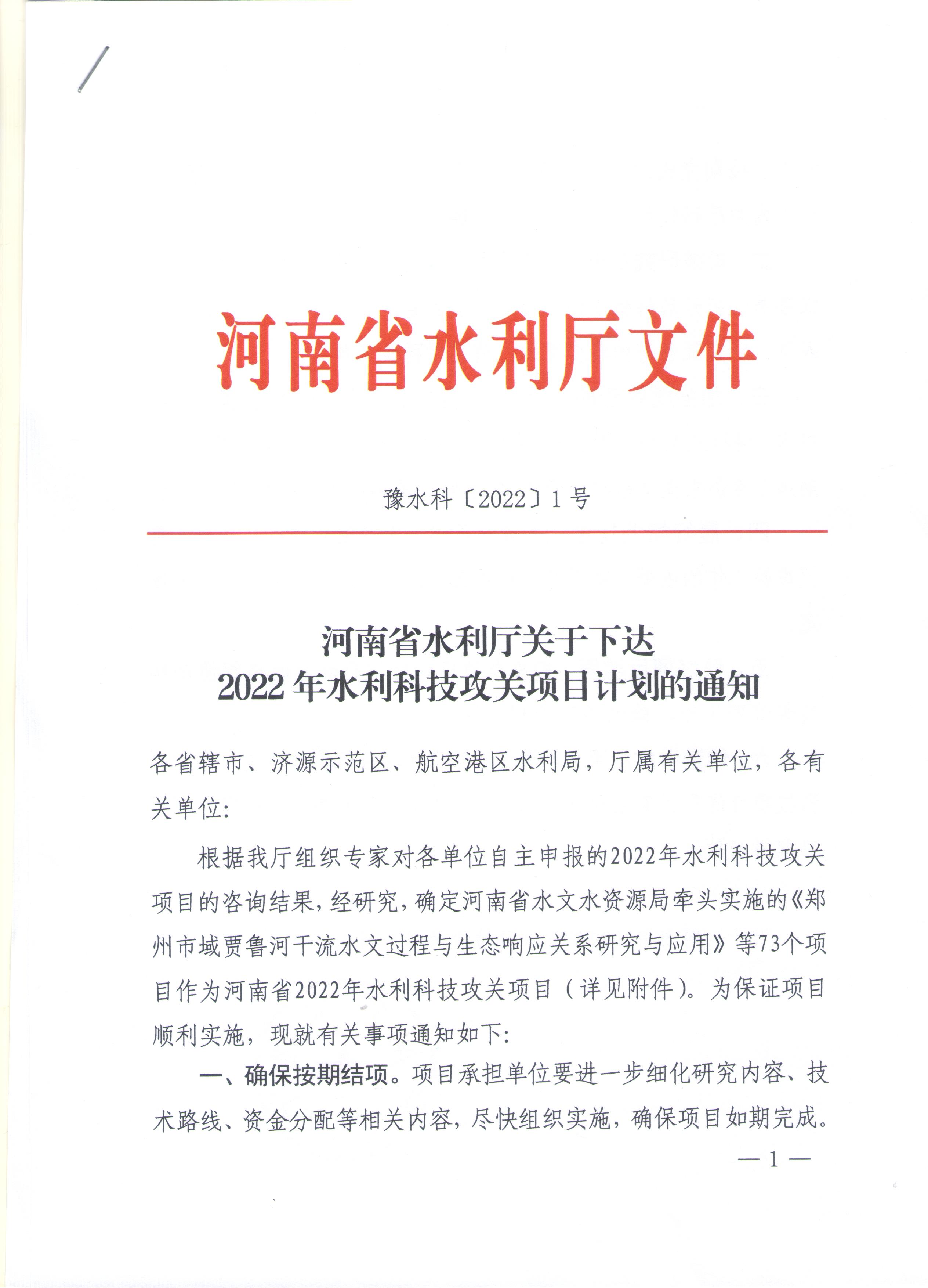 近日,由我公司申報(bào)的《河南省分區(qū)節(jié)水農(nóng)業(yè)技術(shù)體系發(fā)展模式與節(jié)水潛力研究》和《小型灌溉渠道流量智能測(cè)控一體化系統(tǒng)研究》獲批河南省水利廳2022年水利科技攻關(guān)項(xiàng)目。