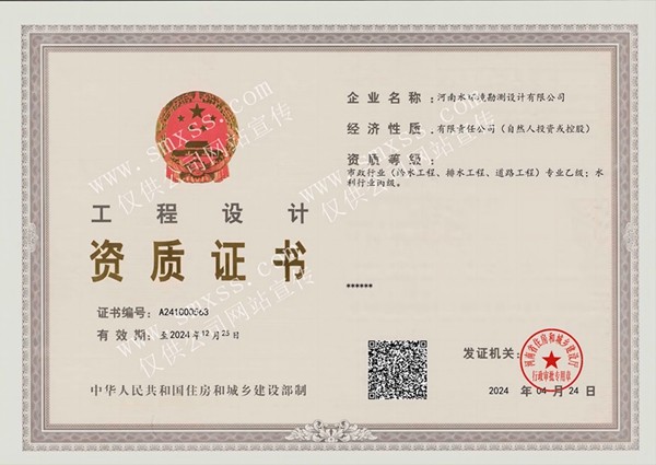 近日,經河南省住建廳審核批準,我司成功取得市政行業(排水、道路)專業乙級資質,設計實力再度獲得上級主管部門認可。