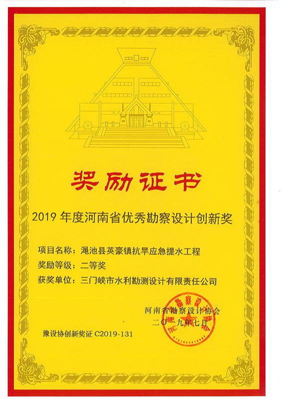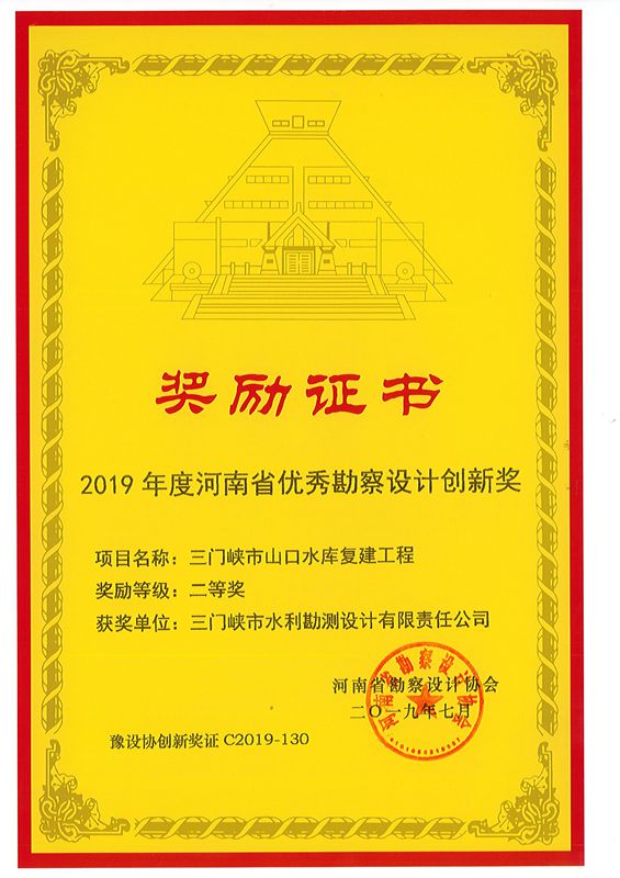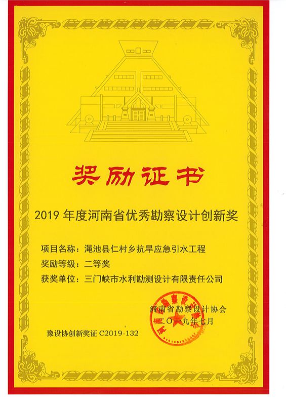 2019年度河南省優(yōu)秀勘察設(shè)計(jì)創(chuàng)新獎(jiǎng)