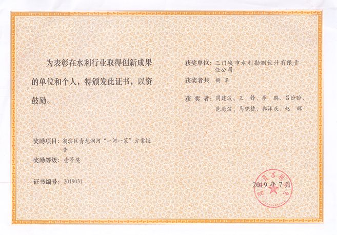 2019年度第二屆河南省水利創(chuàng)新成果獎(jiǎng)